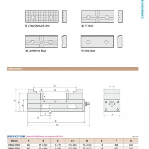 - Sử dụng Thép FCD 60 cho độ cứng cao và cũng có hệ thống khóa tự động kéo chi tiết gia công xuống vị trí chính xác trong vòng 0,01mm dưới 4500kg áp lực, Ê tô này này phù hợp nhất cho độ chính xác tạo khuôn cho các Trung tâm Gia công.