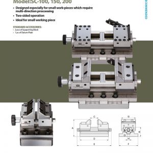- Sử dụng Thép FCD 60 cho độ cứng cao và cũng có hệ thống khóa tự động kéo chi tiết gia công xuống vị trí chính xác trong vòng 0,01mm dưới 4500kg áp lực, Ê tô này này phù hợp nhất cho độ chính xác tạo khuôn cho các Trung tâm Gia công.